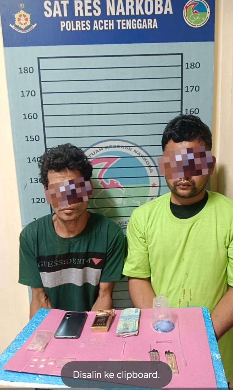 “Kita tangkap dua pria, inisial APS (24), warga Lawe Hijo dan MA (41), warga Desa Pulo Kedondong. Keduanya kita amankan bersama barang bukti sabu dan alat isap,” kata Kasi Humas Polres Aceh Tenggara, AKP J. Silalahi saat dikonfirmasi, Minggu (23/11/2025).