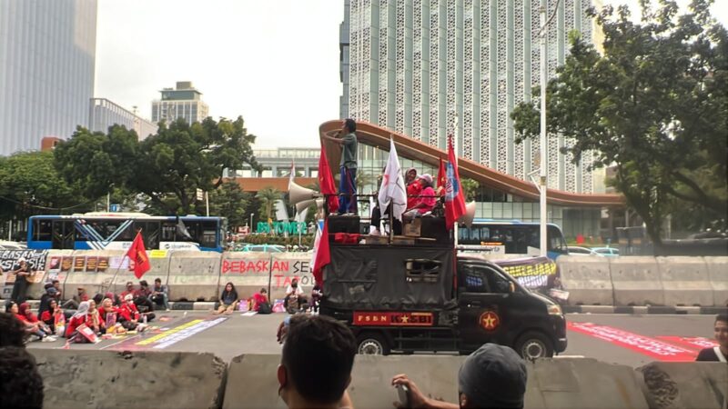 “Penyekatan, pengaturan arus massa, serta pengawalan perjalanan dari Menara Thamrin menuju Monas berjalan lancar. Aparat Polri juga memastikan ruang penyampaian pendapat publik tetap aman dan humanis,” ujarnya.