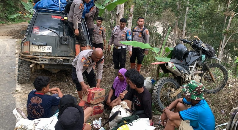 Blangkejeren, 22 Desember 2025 |  Kapolres Gayo Lues AKBP Hyrowo, S.I.K. bersama Bupati Gayo Lues Suhaidi, S.Pd., M.Si. dan Dandim 0113/Gayo Lues Letkol Arm. Fran Desiapan Eka Saputra, S.H., didampingi personel Brimob serta komunitas off-road, menembus medan terjal untuk menyalurkan bantuan logistik sembako sekaligus meninjau kondisi masyarakat di Kecamatan Pining, Kabupaten Gayo Lues, Aceh.