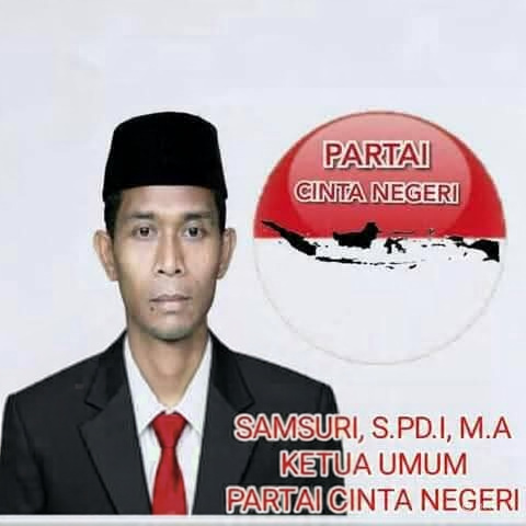 Samsuri, S.Pd.I., M.A. adalah seorang tokoh politik Indonesia yang merupakan pendiri dan Ketua Umum Partai Cinta Negeri (PCN). Beliau seorang Tokoh Nasional yang memiliki latar belakang sebagai Guru dan aktivis politik yang telah berpengalaman dalam berbagai organisasi dan partai politik di Indonesia. Berikut adalah profilnya: