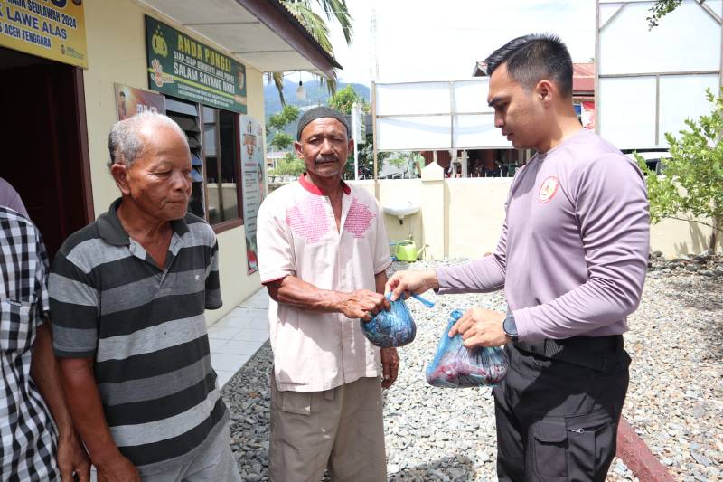 Aceh Tenggara – Dalam rangka menyambut Bulan Suci Ramadhan serta sebagai wujud kepedulian terhadap sesama, Polres Aceh Tenggara bersama Mahasiswa Sekolah Tinggi Ilmu Kepolisian (STIK) Angkatan 83/WPS melaksanakan kegiatan pembagian daging meugang kepada anak yatim piatu dan masyarakat terdampak banjir, Rabu (18/02/2026).