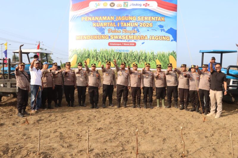 SIMALUNGUN – Kepemimpinan langsung dari Kapolres Simalungun AKBP Marganda Aritonang, SH, SIK, MM., terwujud dalam kegiatan penanaman jagung serentak kuartal I tahun 2026. Pada Sabtu (7/3/2026) sore, Kapolres memimpin langsung pelaksanaan penanaman jagung serentak secara virtual bersama Forkopimda Simalungun di Nagori Purba Sari, Kecamatan Tapian Dolok, sebagai bentuk dukungan nyata Polri terhadap program swasembada pangan pemerintah.