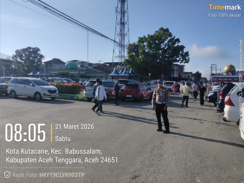 Aceh Tenggara – Dalam rangka memberikan rasa aman dan nyaman kepada masyarakat saat pelaksanaan Hari Raya Idul Fitri 1447 H, jajaran Polres Aceh Tenggara melaksanakan kegiatan pengamanan Sholat Idul Fitri di Masjid Agung At-Taqwa, Kabupaten Aceh Tenggara. Sabtu 21 Maret 2026